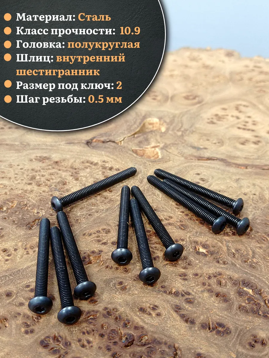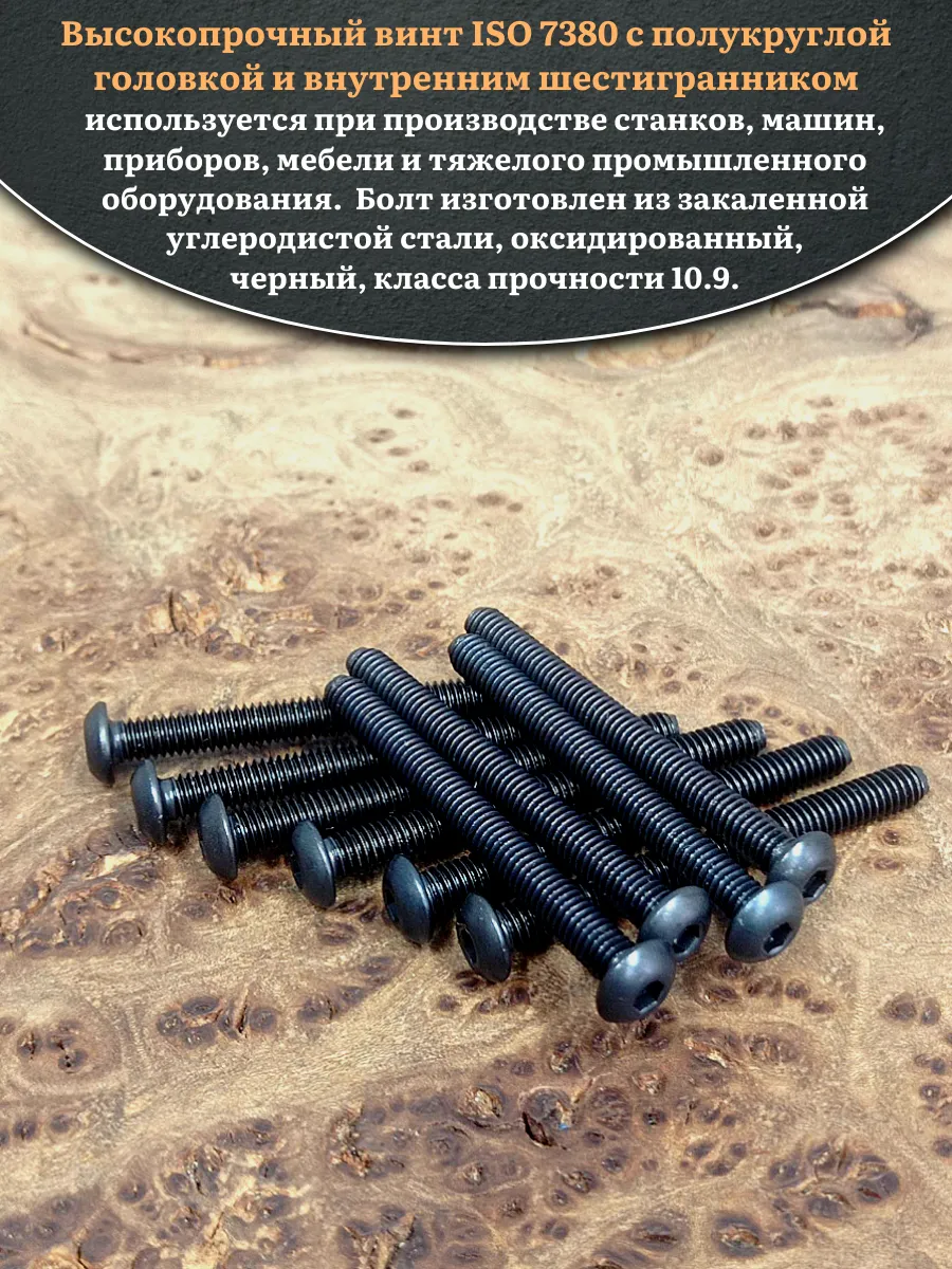 Винт чёрный М3х45 ISO 7380 под шестигранник к.п.10.9, 10 шт.