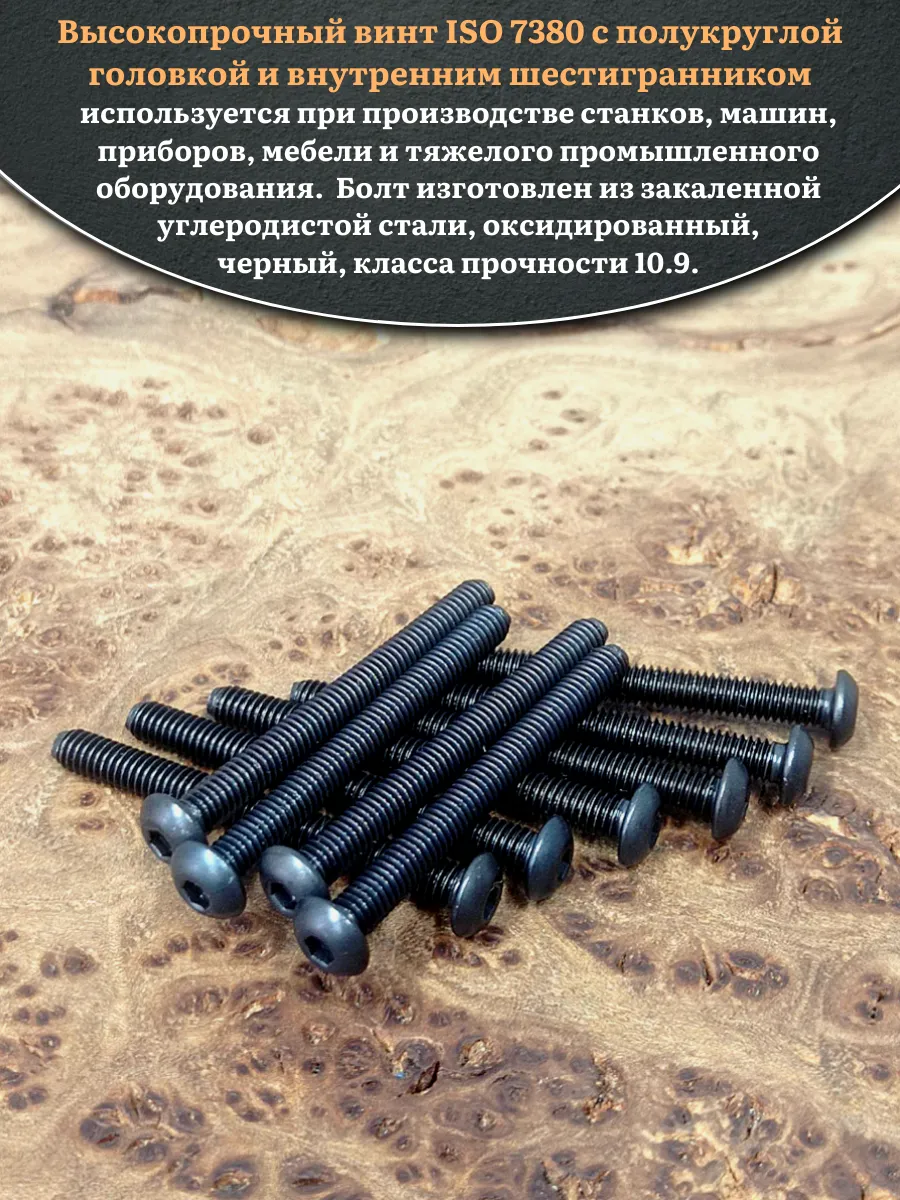 Винт чёрный М3х45 ISO 7380 под шестигранник к.п.10.9, 20 шт.