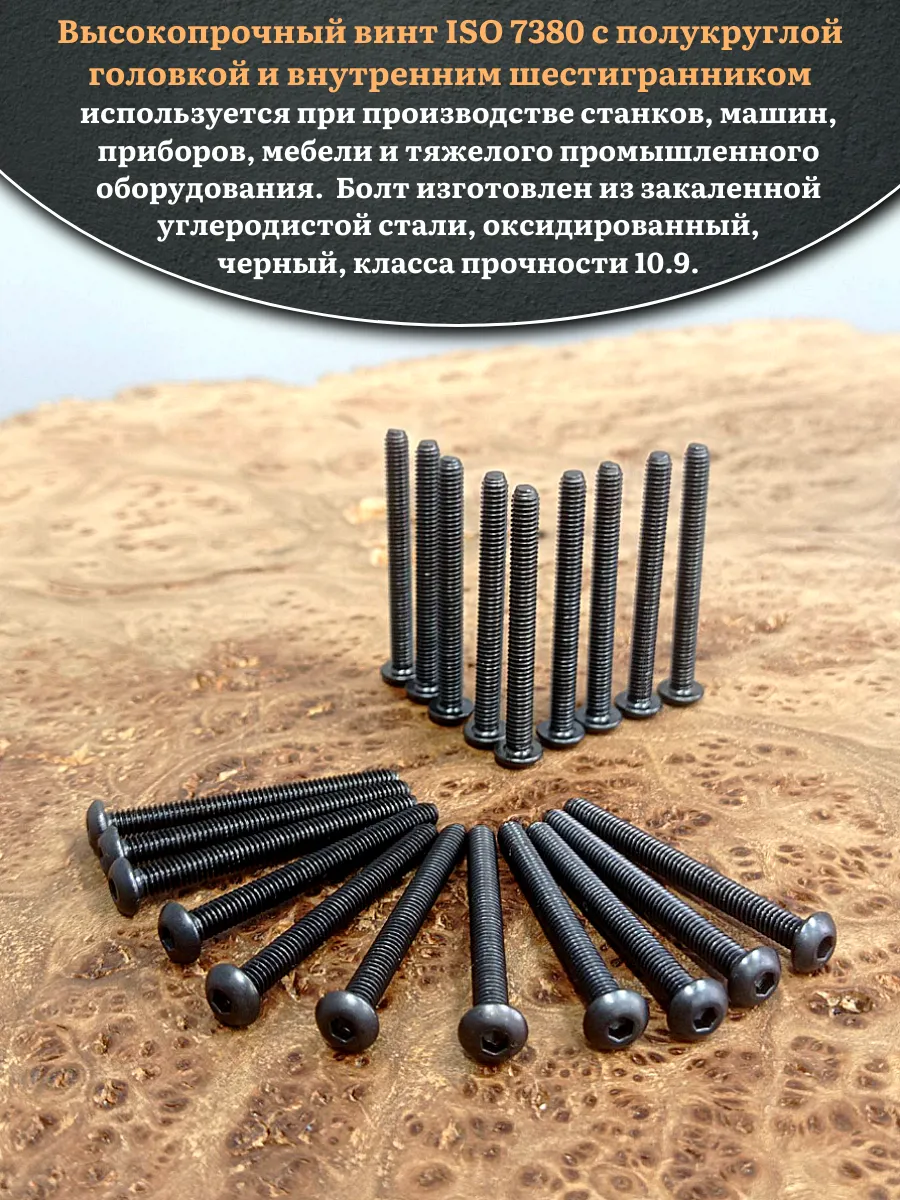 Винт чёрный М3х50 ISO 7380 под шестигранник к.п.10.9, 20 шт.