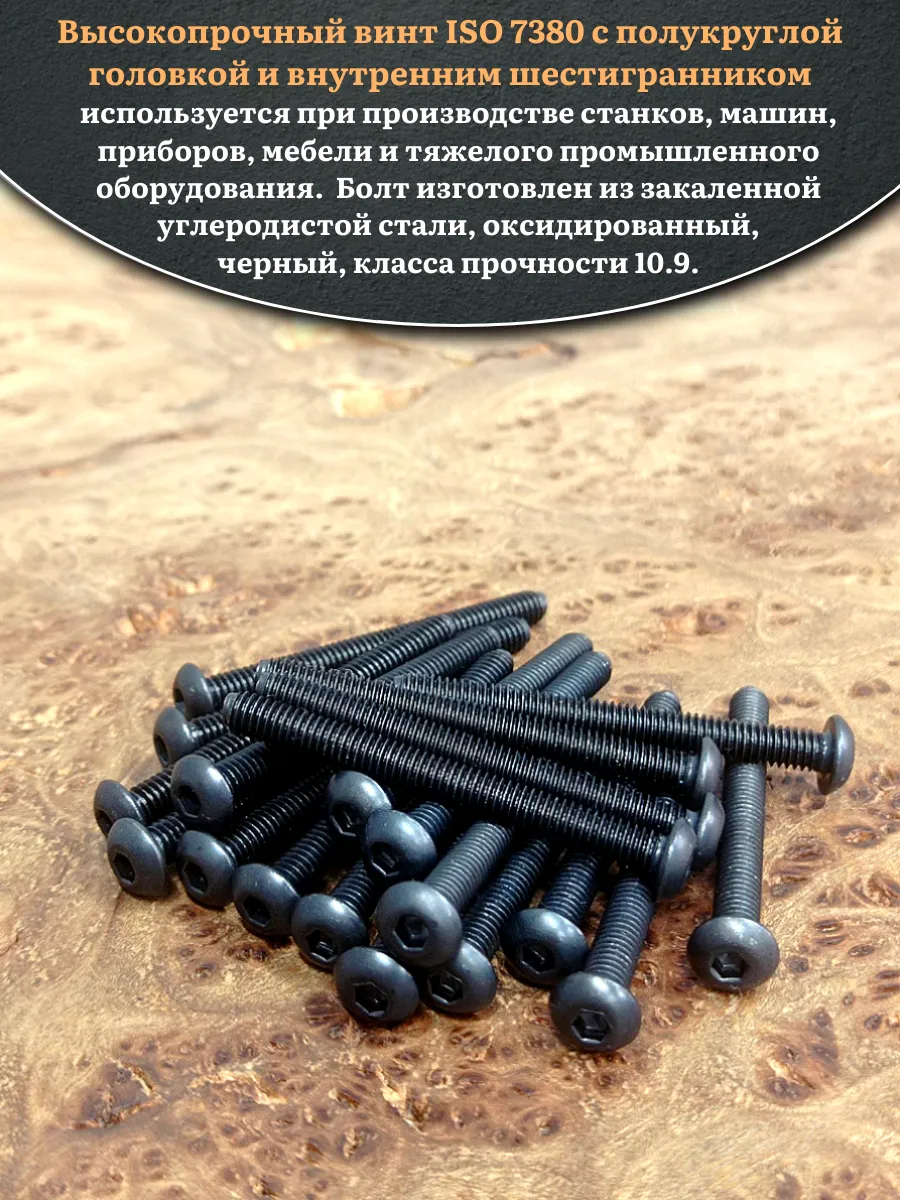 Винт чёрный М3х50 ISO 7380 под шестигранник к.п.10.9, 50 шт.