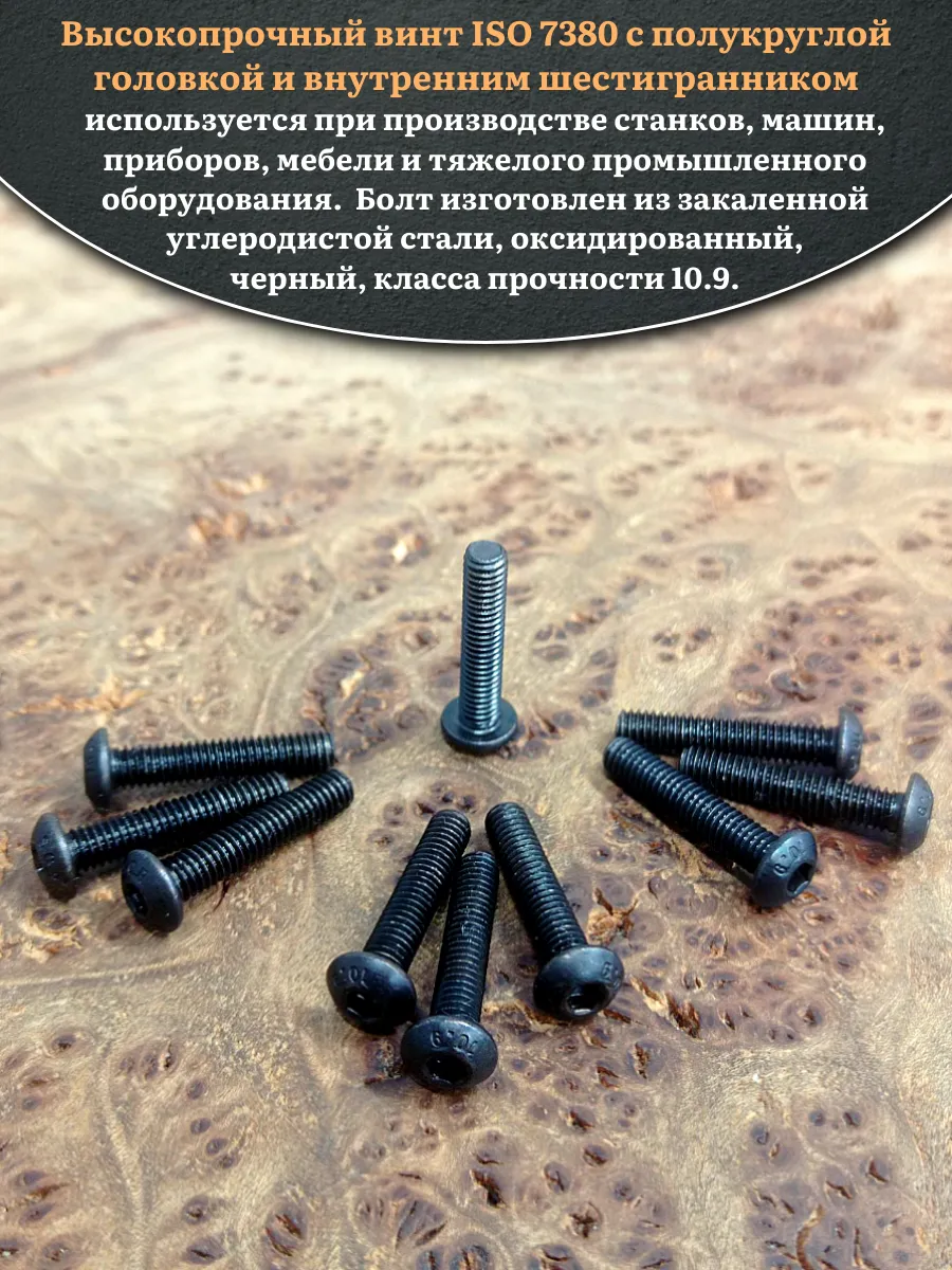 Винт чёрный М4х14 ISO 7380 под шестигранник к.п.10.9, 10 шт.