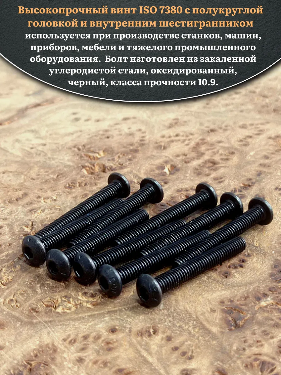 Винт чёрный М4х25 ISO 7380 под шестигранник к.п.10.9, 100 шт.