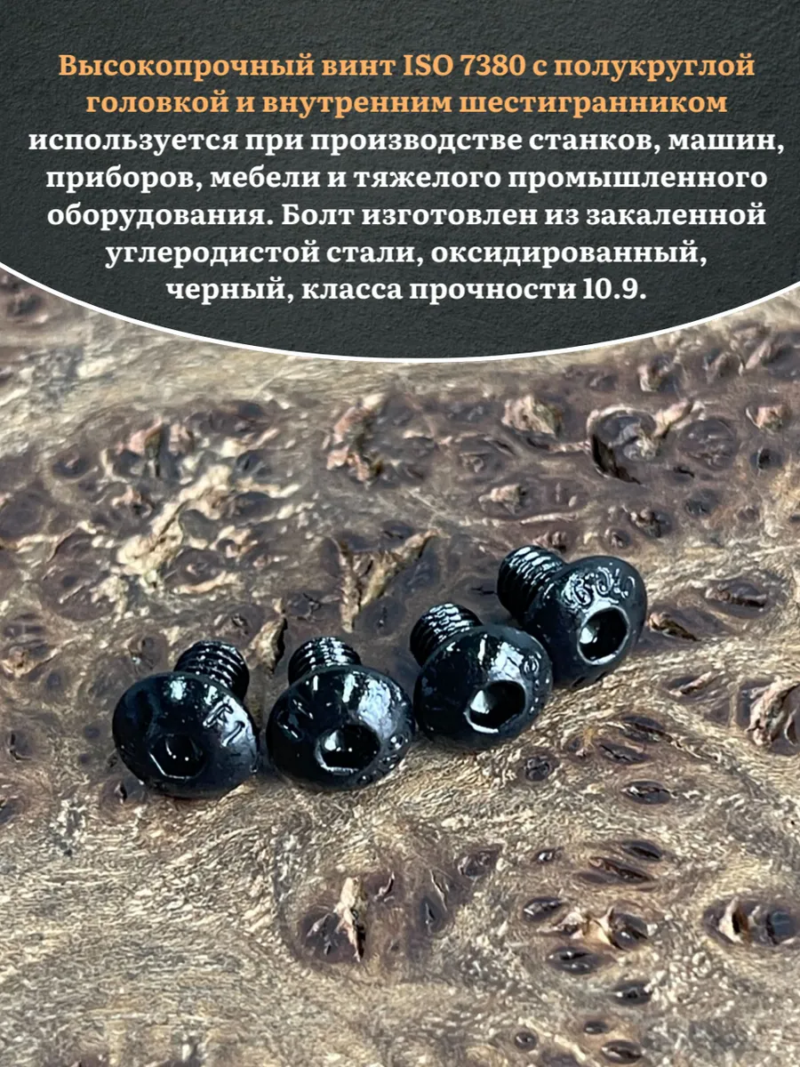 Винт чёрный М4х5 ISO 7380 под шестигранник к.п.10.9, 20 шт.