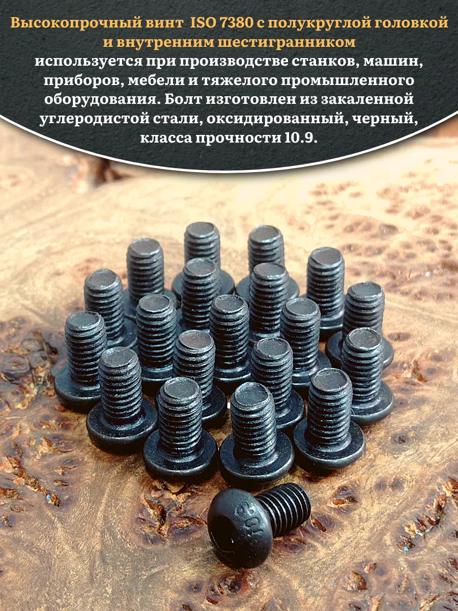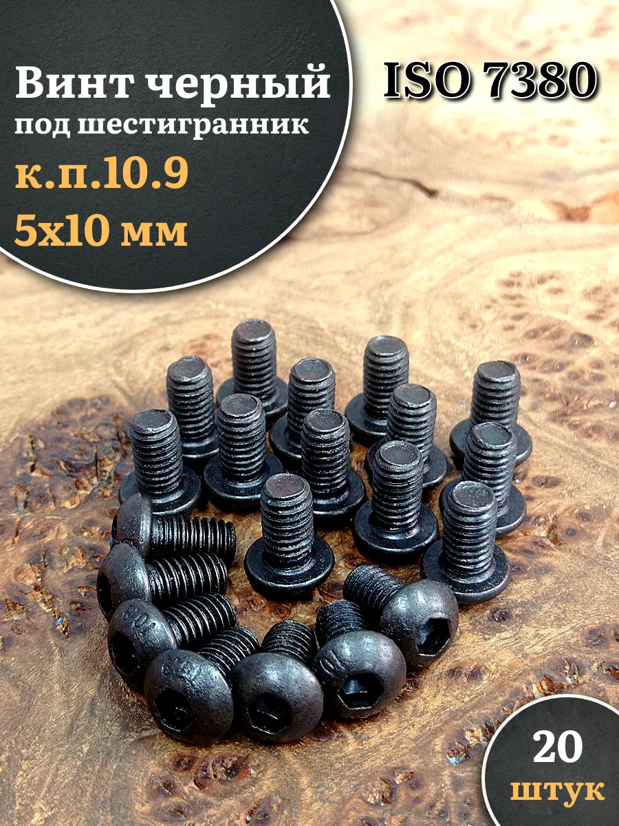 Винт чёрный М5х10 ISO 7380 под шестигранник к.п.10.9, 20 шт.