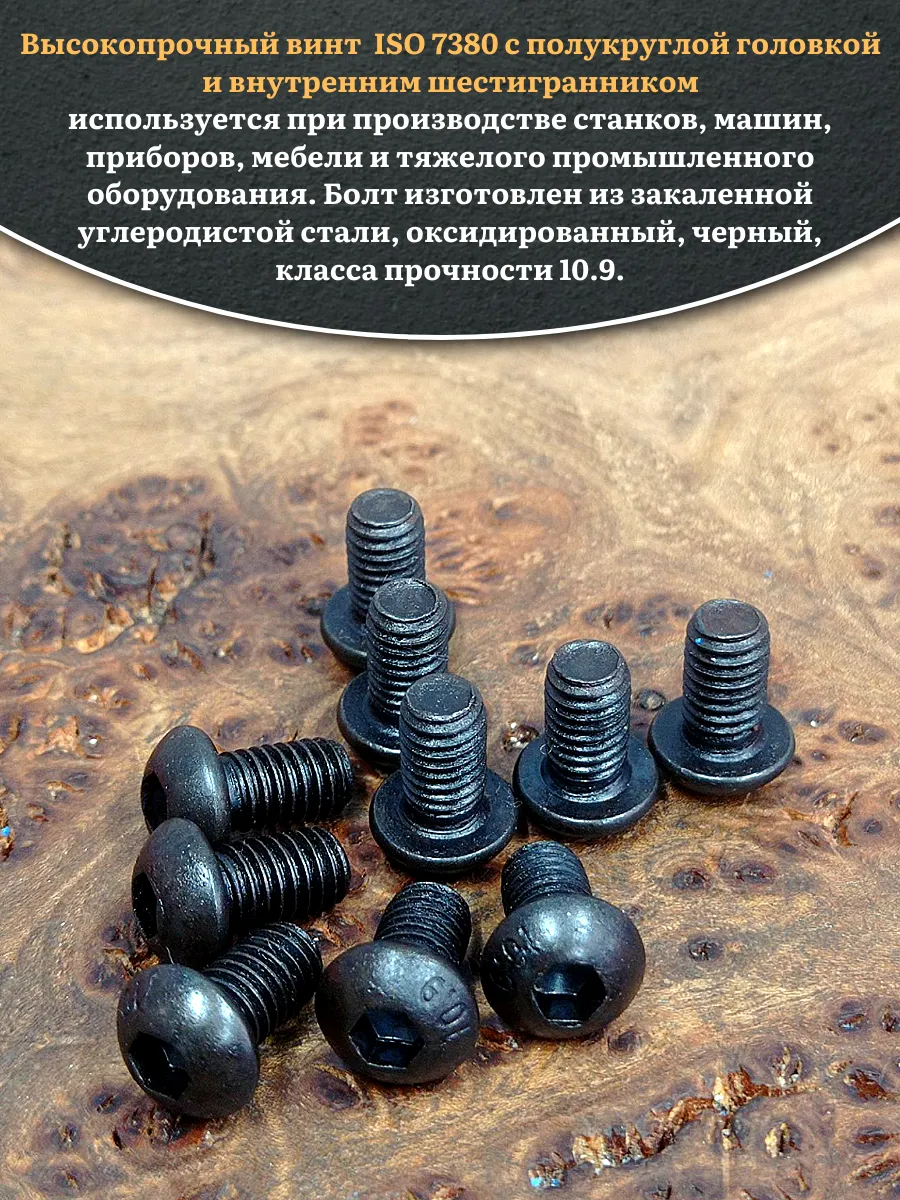 | Винт чёрный М5х12 ISO 7380 под шестигранник к.п.10.9, 100 шт. | 00-00001072ф100 | 1 шт. |