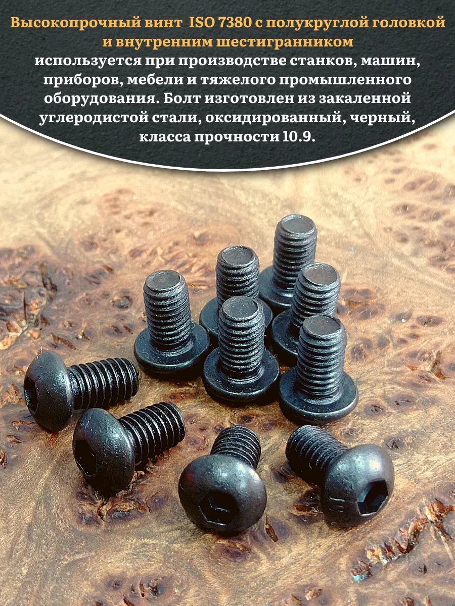 Винт чёрный М5х12 ISO 7380 под шестигранник к.п.10.9, 20 шт.