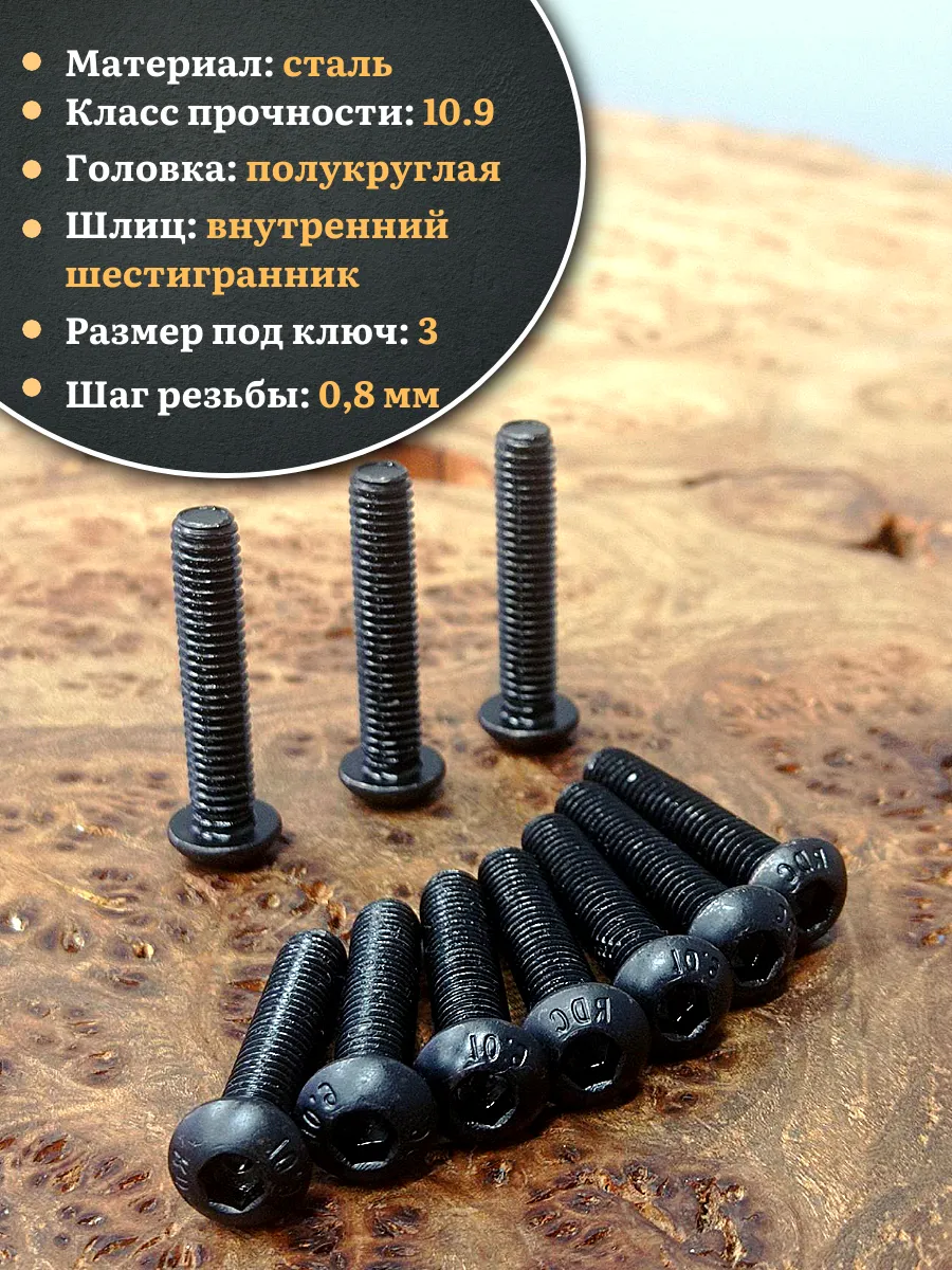 | Винт чёрный М5х30 ISO 7380 под шестигранник к.п.10.9, 10 шт. | 00-00004440ф10 | 1 шт. |