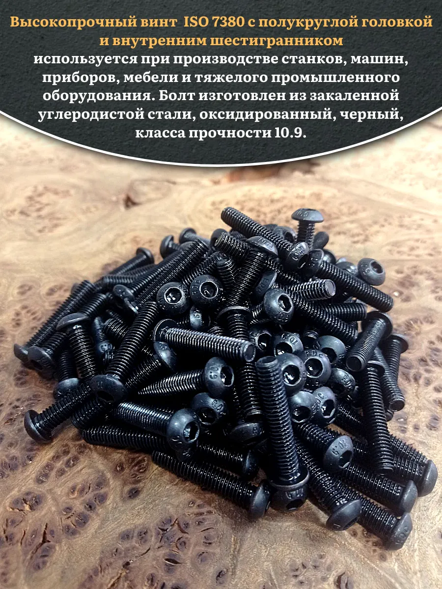 Винт чёрный М5х35 ISO 7380 под шестигранник к.п.10.9, 100 шт.