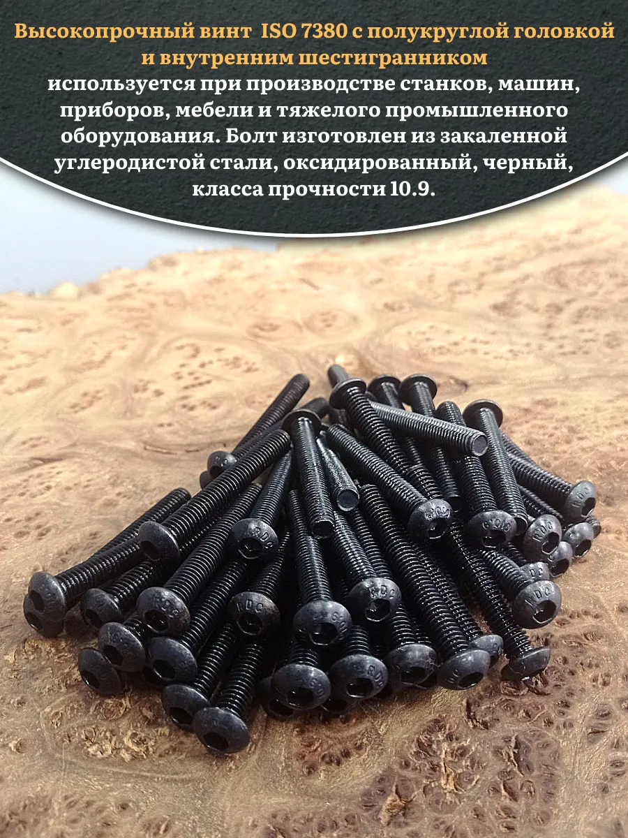 Винт чёрный М5х40 ISO 7380 под шестигранник к.п.10.9, 100 шт.