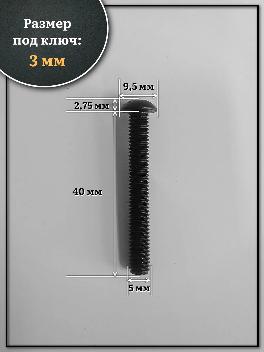 | Винт чёрный М5х40 ISO 7380 под шестигранник к.п.10.9, 10 шт. | 00-00001729ф10 | 1 шт. |
