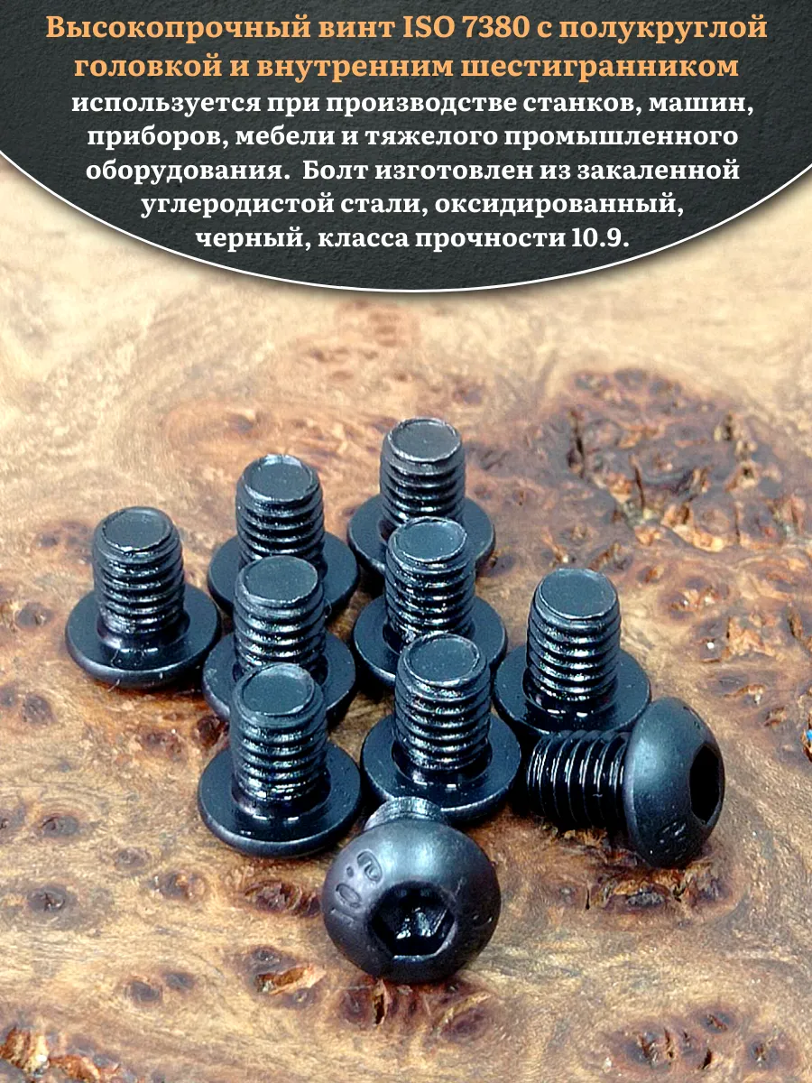 Винт чёрный М5х6 ISO 7380 под шестигранник к.п.10.9, 10 шт.