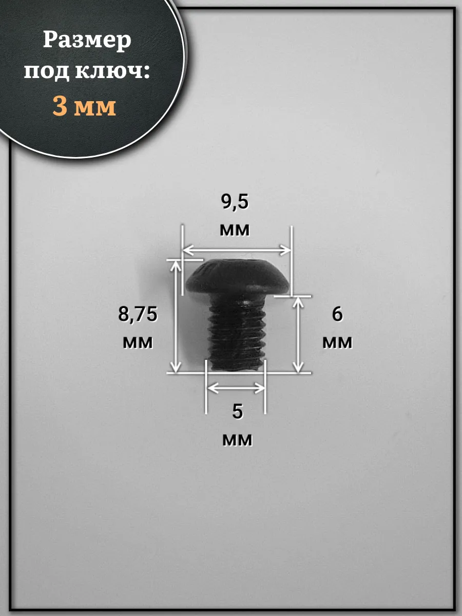 | Винт чёрный М5х6 ISO 7380 под шестигранник к.п.10.9, 10 шт. | 00-00003823ф10 | 1 шт. |