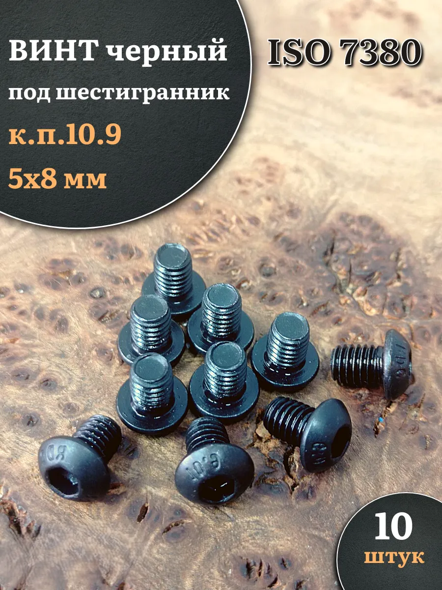 Винт чёрный М5х8 ISO 7380 под шестигранник к.п.10.9, 10 шт.