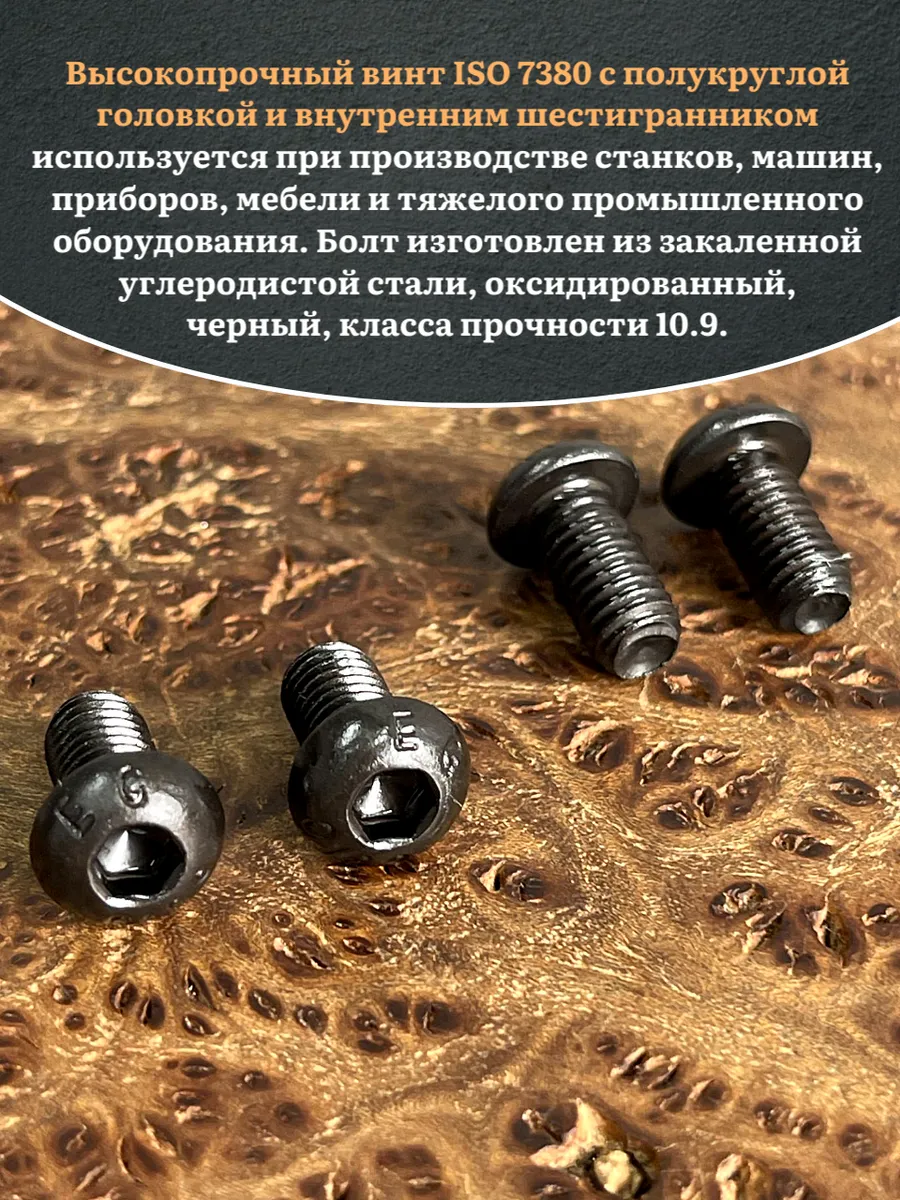 Винт чёрный М6х12 ISO 7380 под шестигранник к.п.10.9, 20 шт.