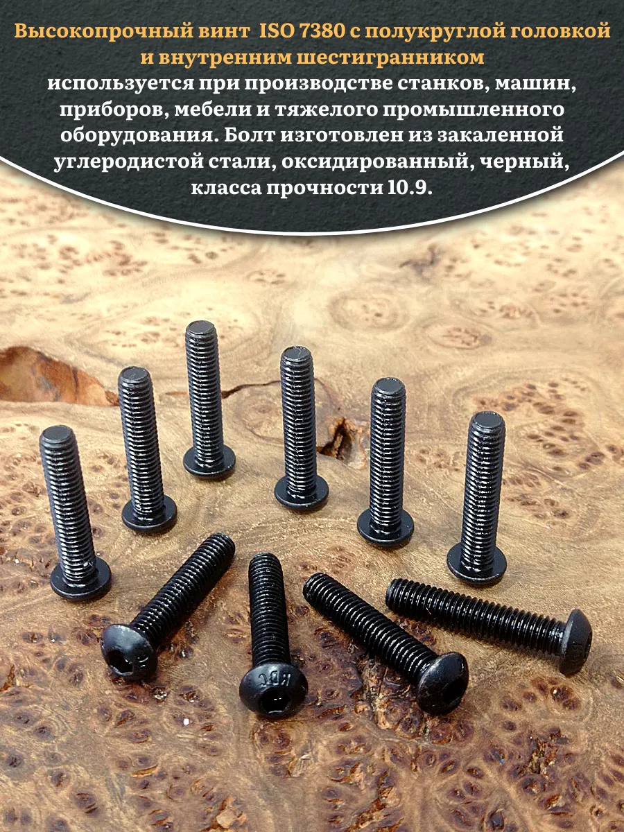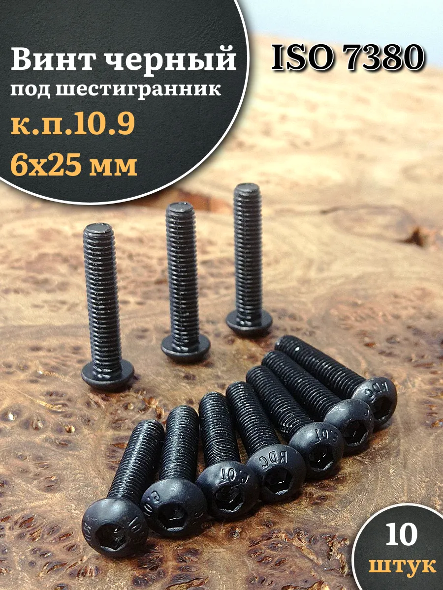 Винт чёрный М6х25 ISO 7380 под шестигранник к.п.10.9, 10 шт.