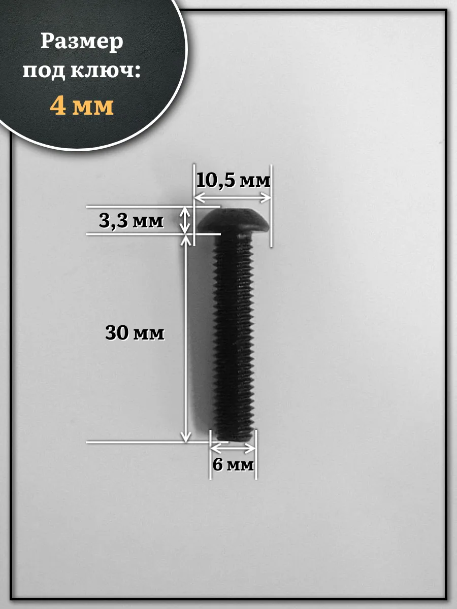 | Винт чёрный М6х30 ISO 7380 под шестигранник к.п.10.9, 10 шт. | 00-00000524ф10 | 1 шт. |