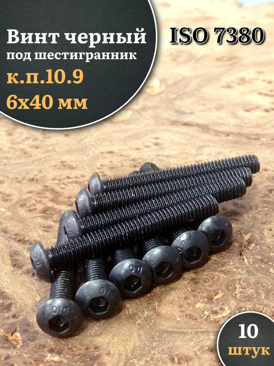Винт чёрный М6х40 ISO 7380 под шестигранник к.п.10.9, 10 шт.