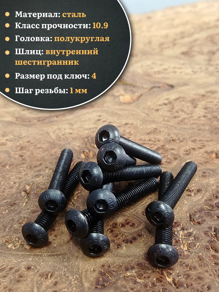 | Винт чёрный М6х45 ISO 7380 под шестигранник к.п.10.9, 20 шт. | 00-00004813ф20 | 1 шт. |