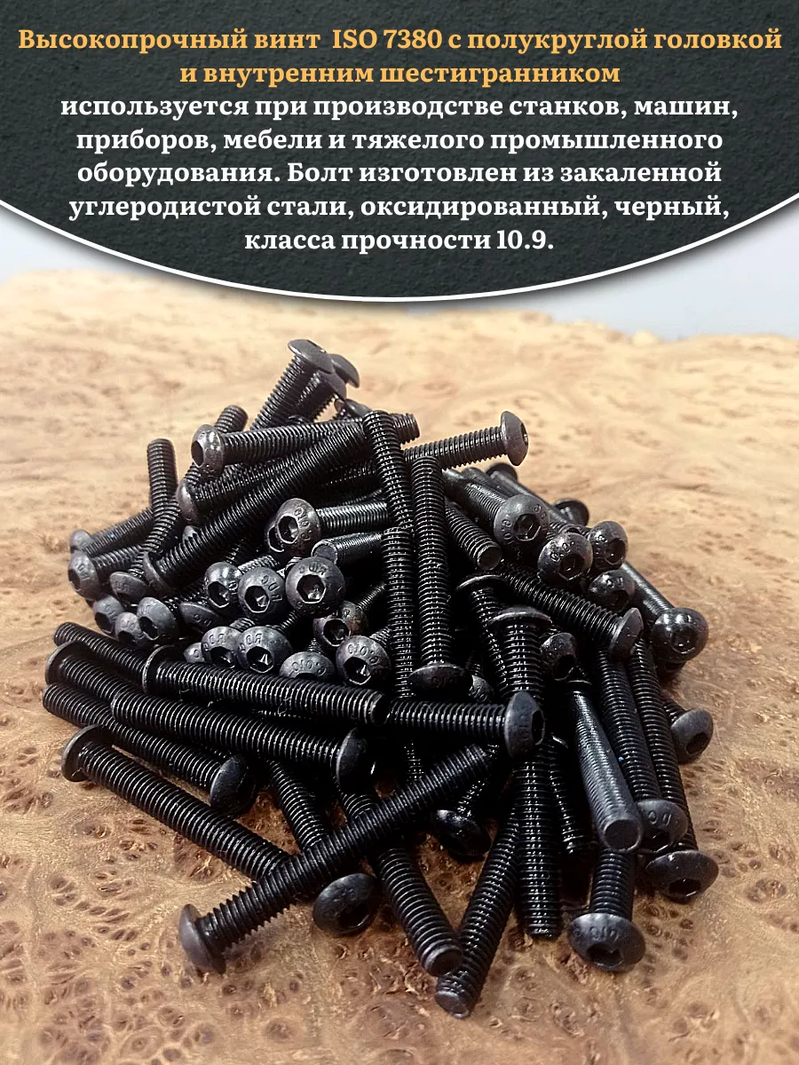 Винт чёрный М6х50 ISO 7380 под шестигранник к.п.10.9, 100 шт.