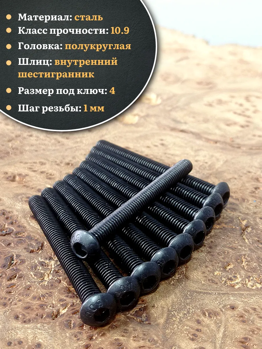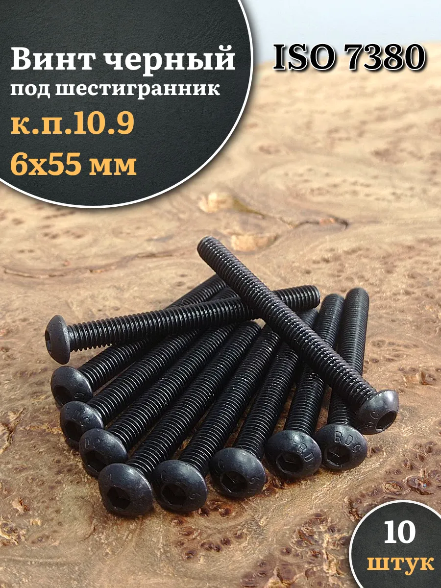 Винт чёрный М6х55 ISO 7380 под шестигранник к.п.10.9, 10 шт.