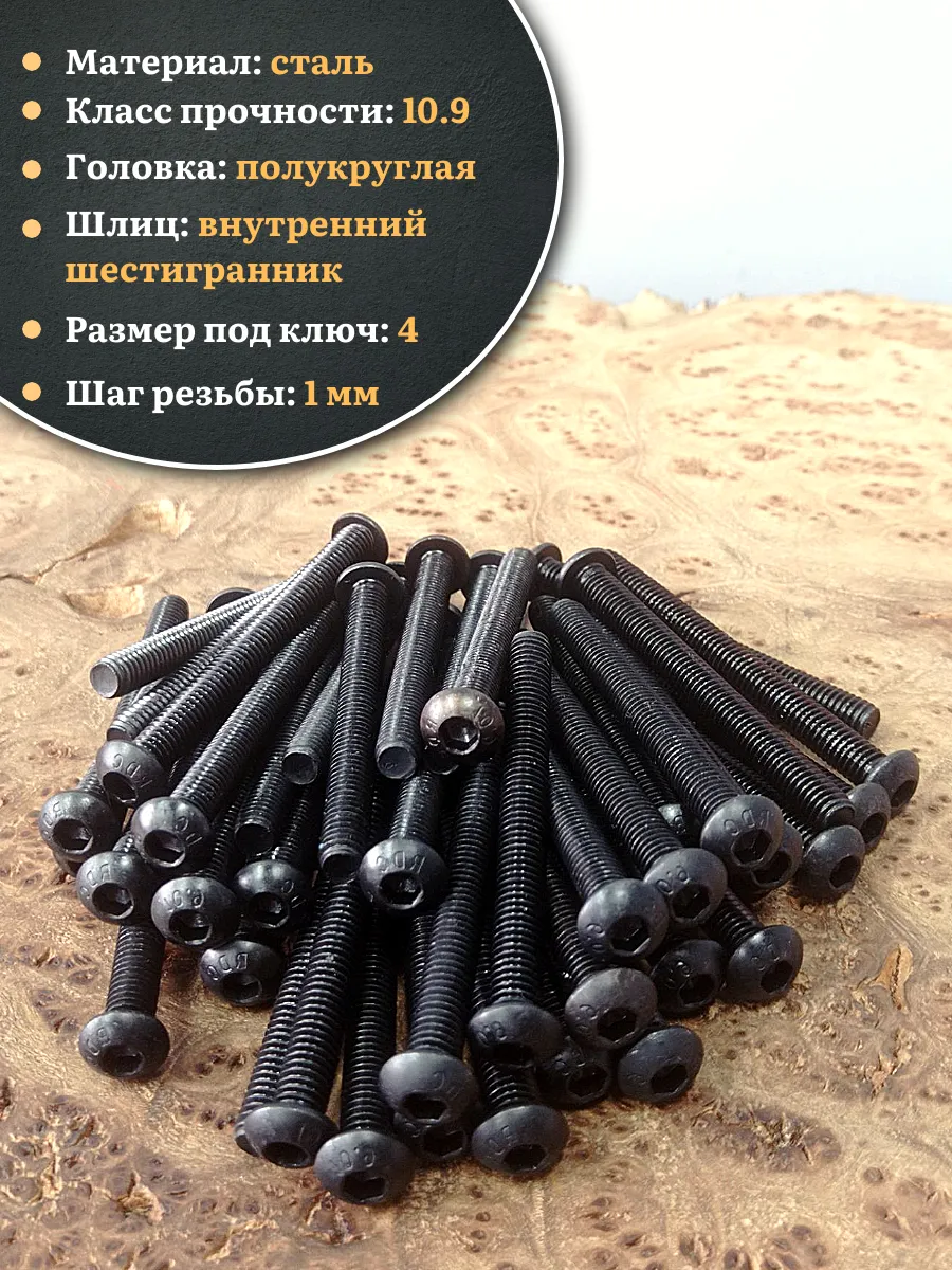 | Винт чёрный М6х60 ISO 7380 под шестигранник к.п.10.9, 10 шт. | 00-00006265ф10 | 1 шт. |