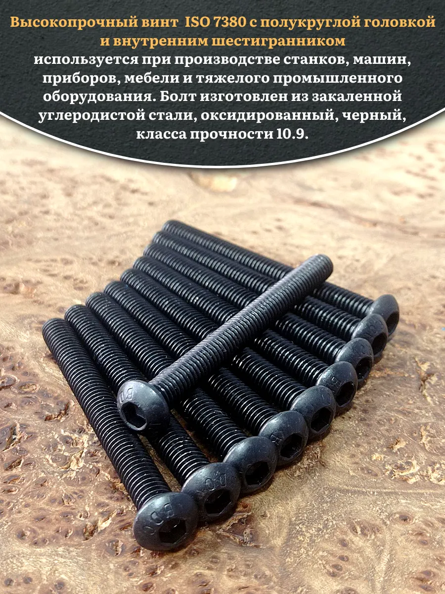Винт чёрный М6х65 ISO 7380 под шестигранник к.п.10.9, 20 шт.