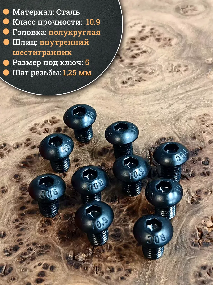 | Винт чёрный М8х10 ISO 7380 под шестигранник к.п.10.9, 10 шт. | 00-00004445ф10 | 1 шт. |