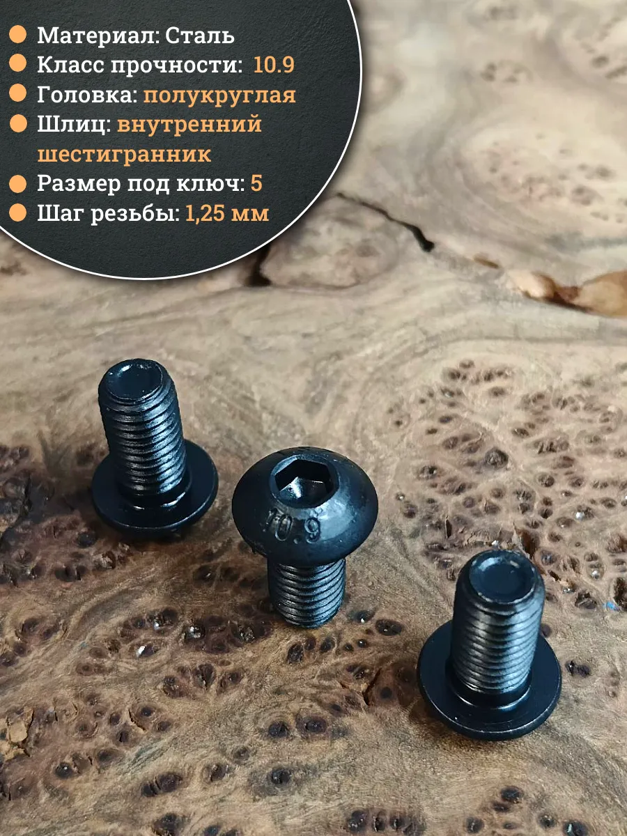 Винт чёрный М8х12 ISO 7380 под шестигранник к.п.10.9, 20 шт.