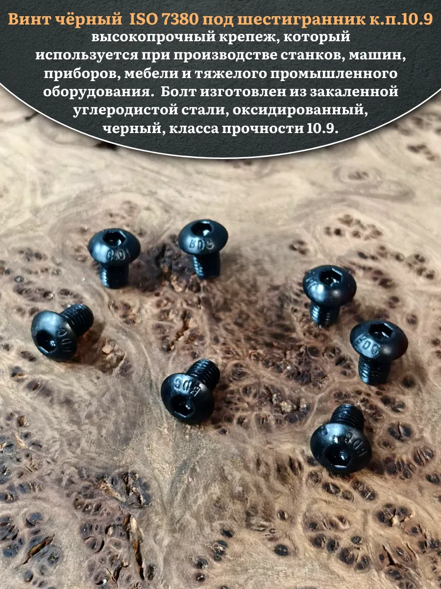 Винт чёрный М8х12 ISO 7380 под шестигранник к.п.10.9, 50 шт.