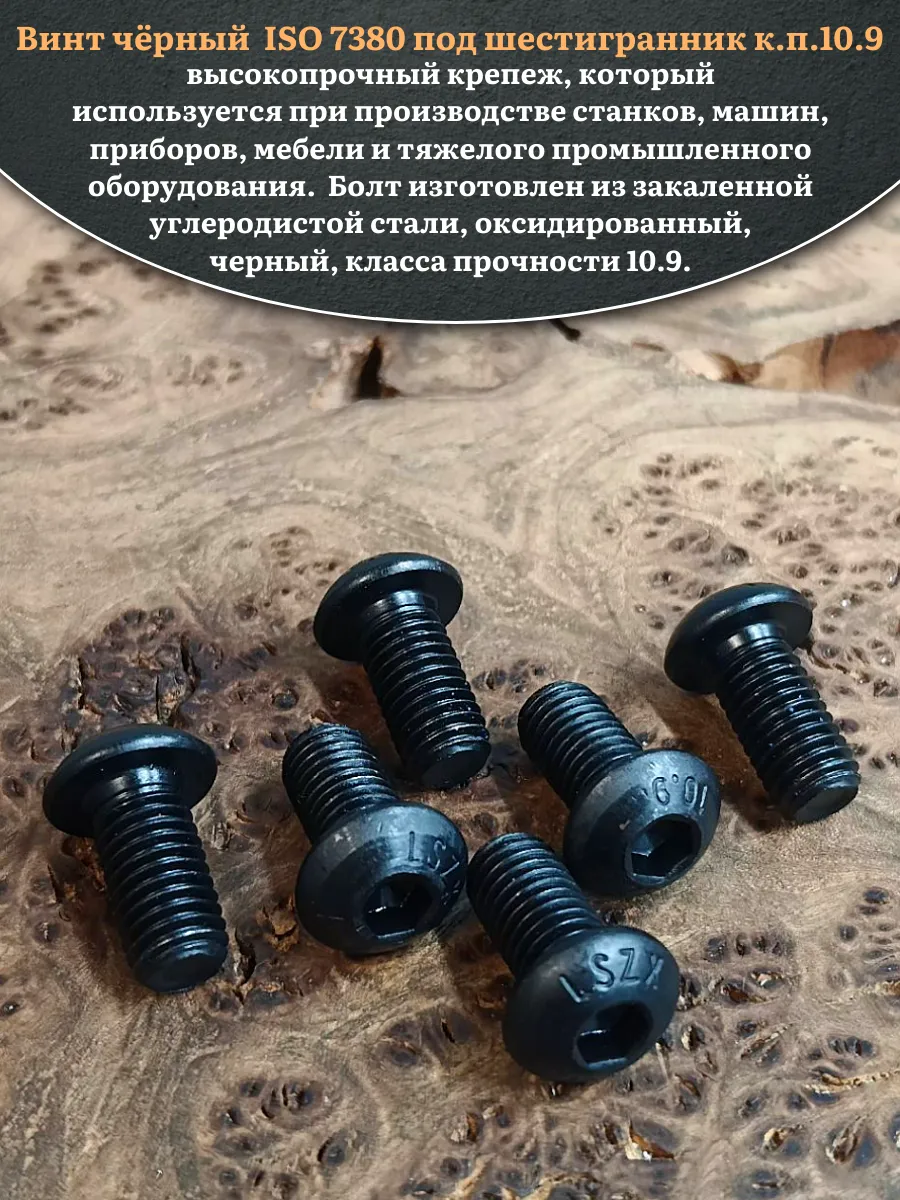 Винт чёрный М8х16 ISO 7380 под шестигранник к.п.10.9, 10 шт.