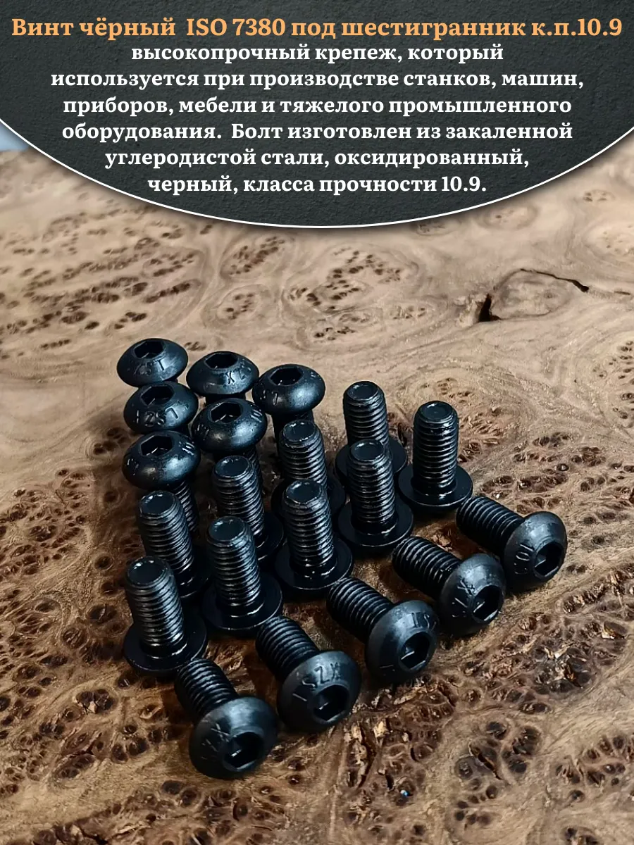 Винт чёрный М8х16 ISO 7380 под шестигранник к.п.10.9, 50 шт.