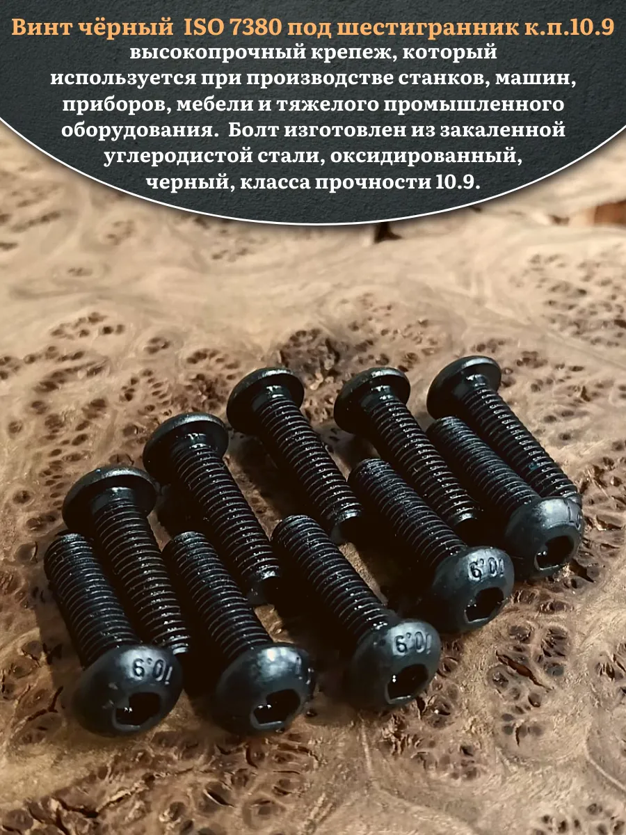 Винт чёрный М8х35 ISO 7380 под шестигранник к.п.10.9, 50 шт.