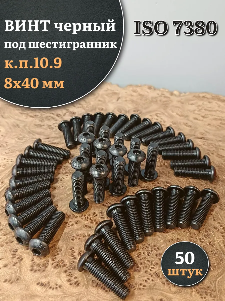 Винт чёрный М8х40 ISO 7380 под шестигранник к.п.10.9, 50 шт.