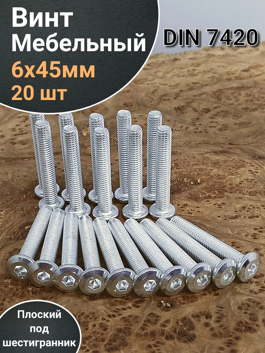 Винт мебельный 6х45 плоский под шестигранник DIN7420,20 шт