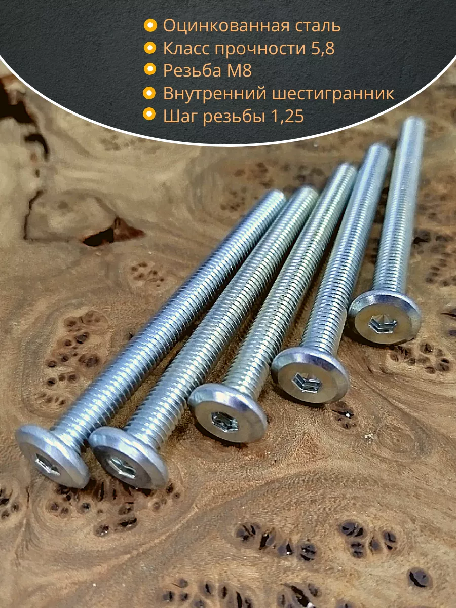 Винт мебельный 8х90 плоский под шестигранник DIN7420,20 шт