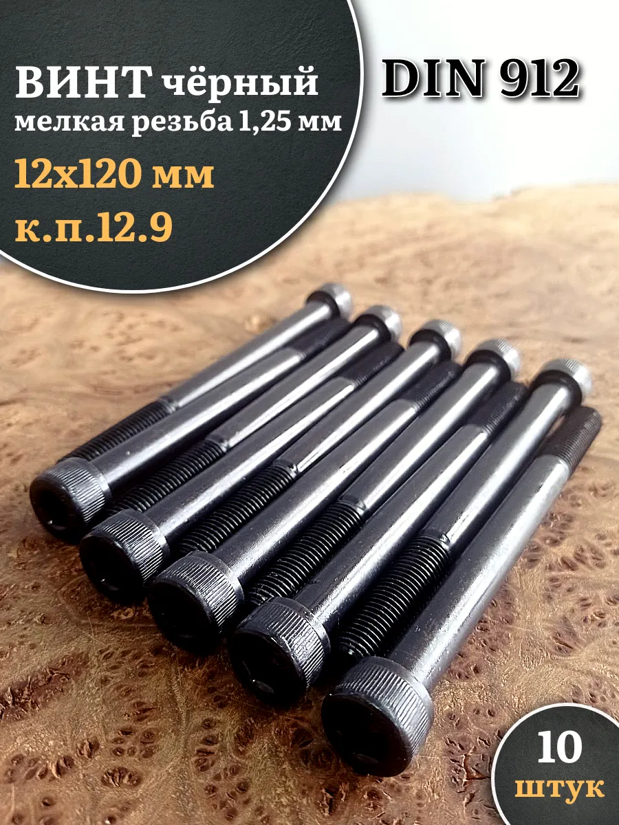 Винт мелкая резьба чёрный к.п.12.9 12х120х1,25 DIN912, 10 шт.