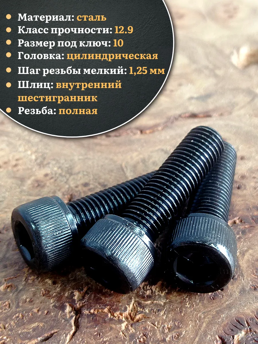 Винт мелкая резьба чёрный к.п.12.9 12х40х1,25 DIN912, 10 шт.