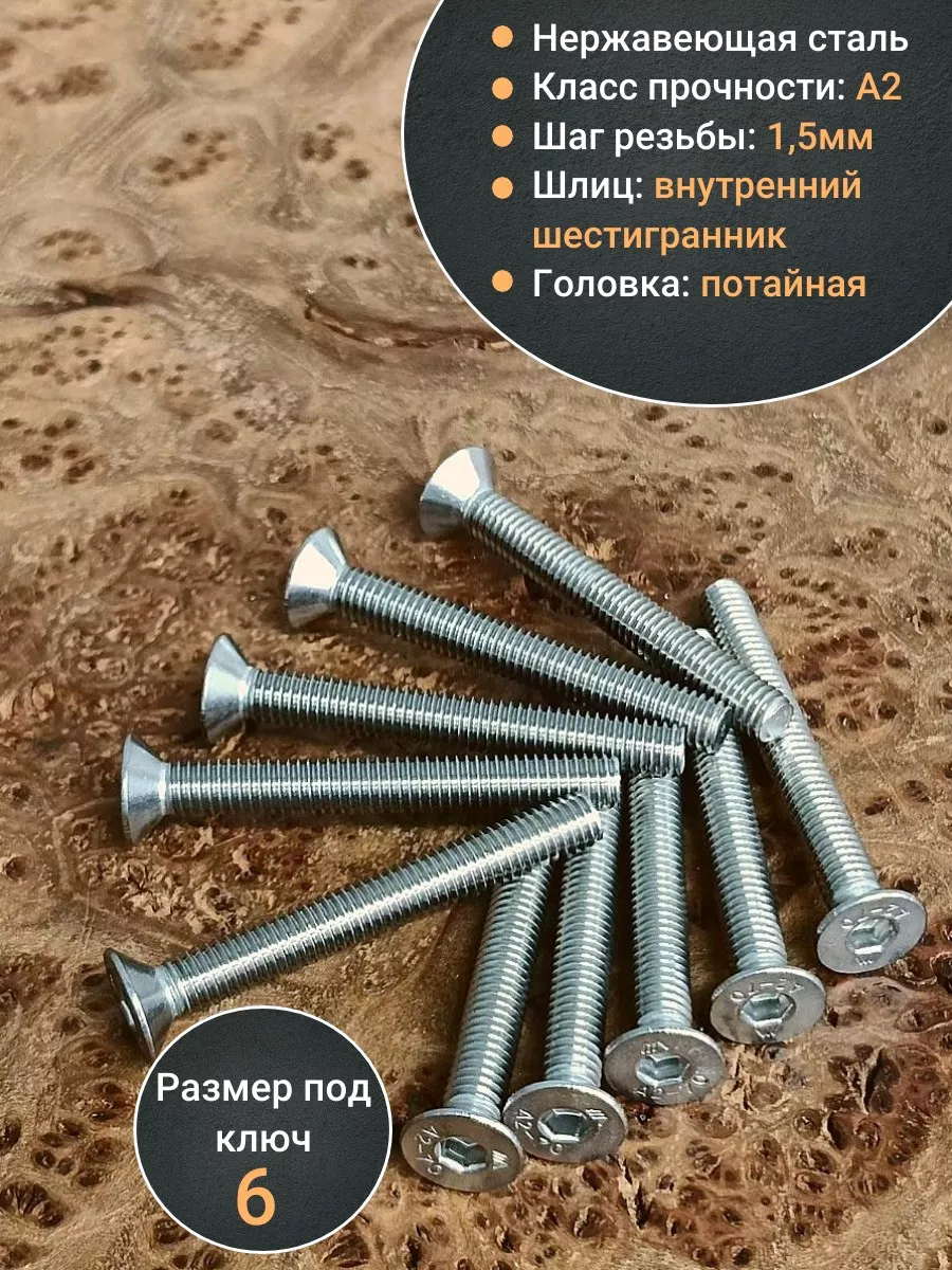 Винт нержавеющий 10х50 потайной шестигранник DIN7991,10шт