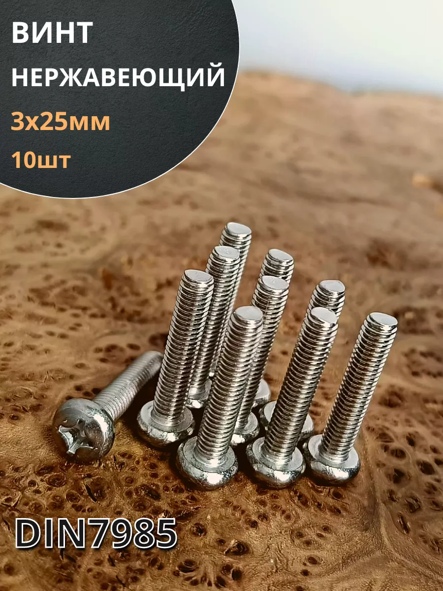 Винт нержавеющий 3х25 мм РН DIN7985, 10 шт.