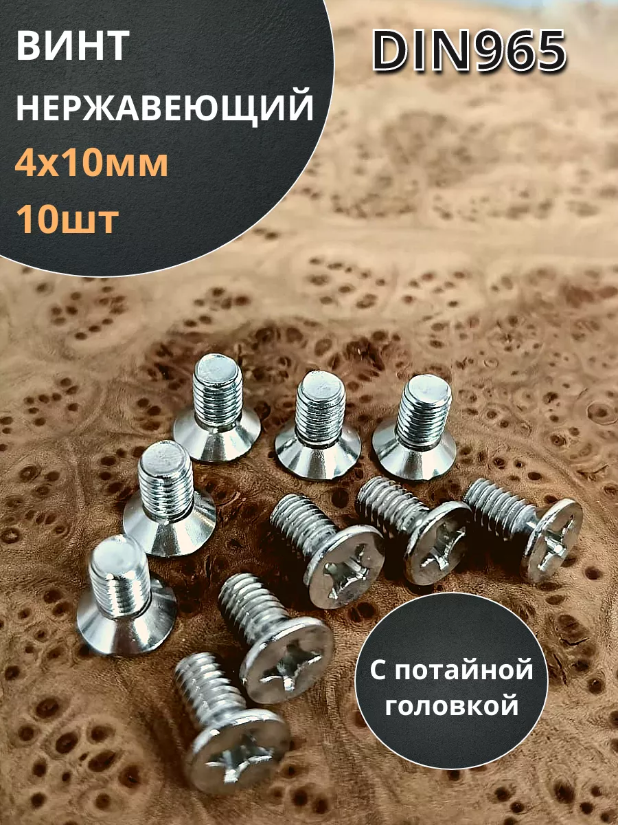 | Винт нержавеющий 4х10 мм DIN 965 с потайной головкой ,50 шт | 11140 | 1 шт. |