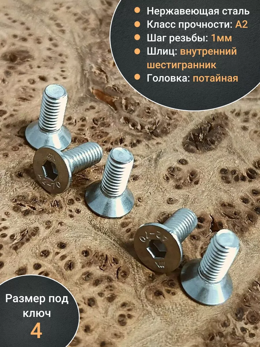 Винт нержавеющий 6х16 потайной под шестигранник DIN7991,10шт