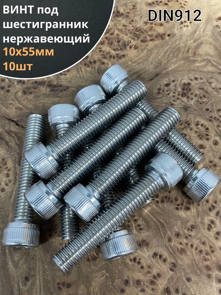 Винт нержавеющий шестигранник М10х55, DIN 912, 10 шт