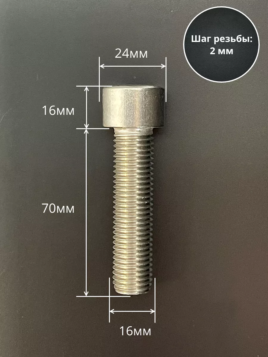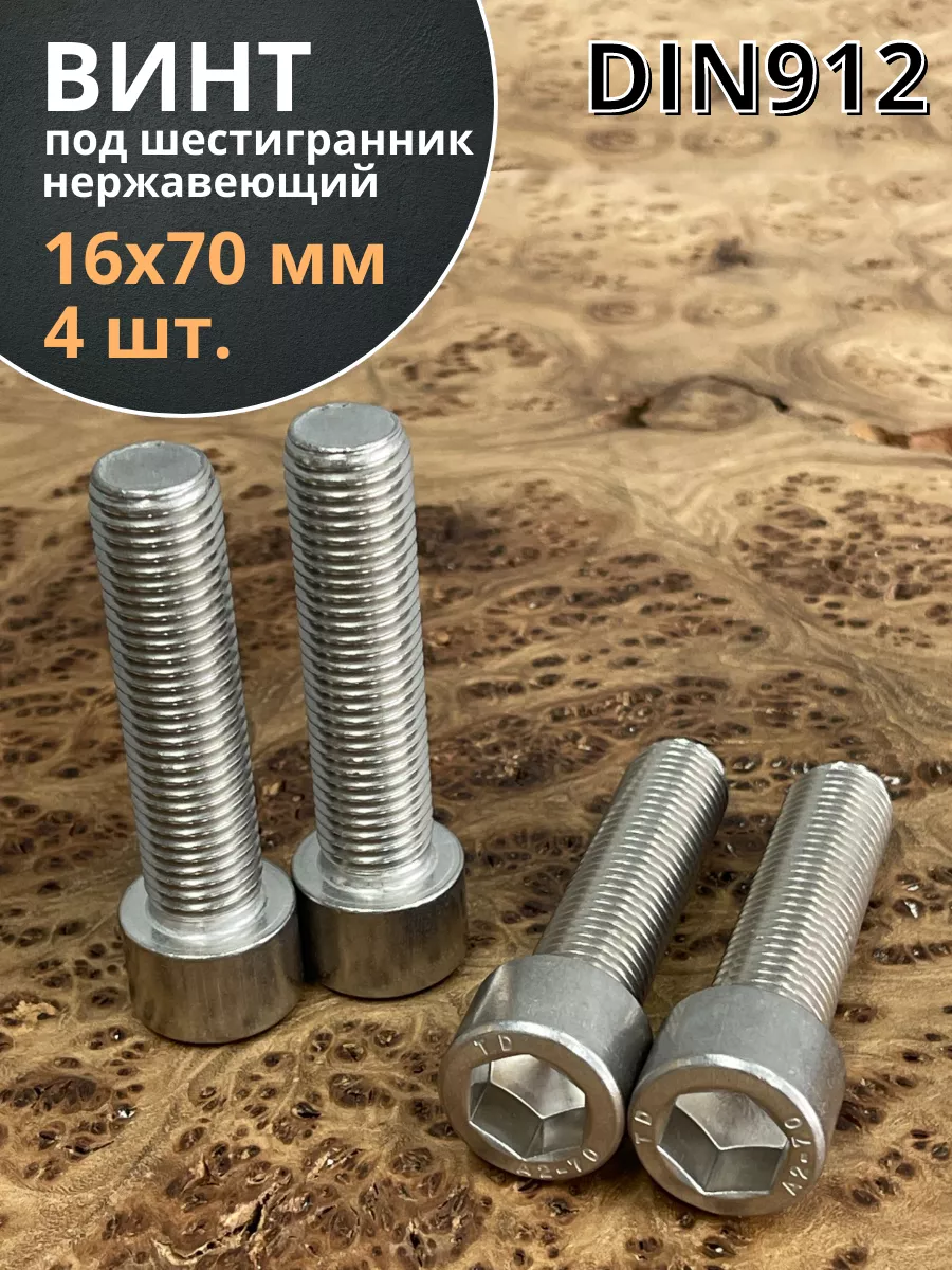 Винт нержавеющий шестигранник М16х70 DIN 912, 4 шт.