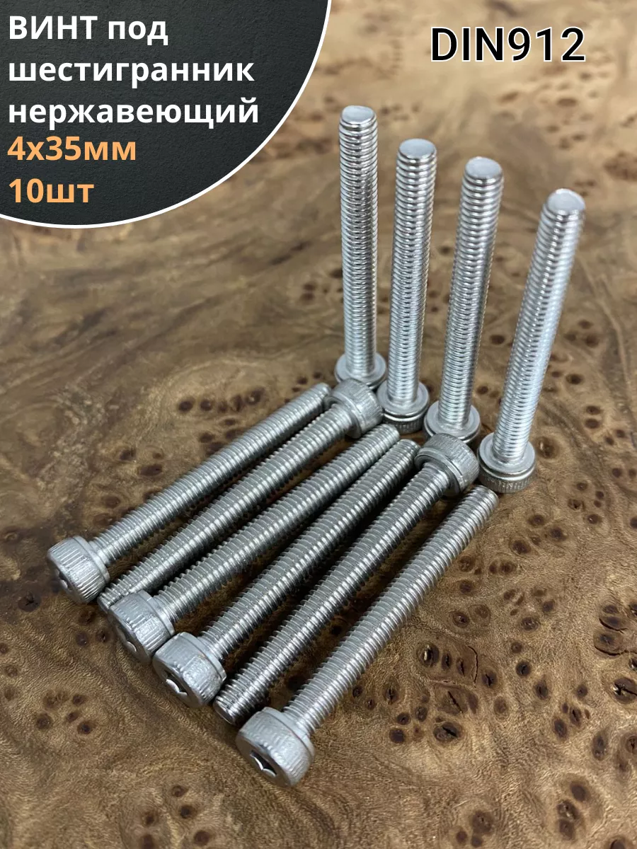 Винт нержавеющий шестигранник М4х35, DIN 912, 10 шт