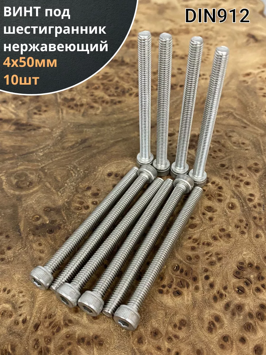 Винт нержавеющий шестигранник М4х50, DIN 912, 10 шт