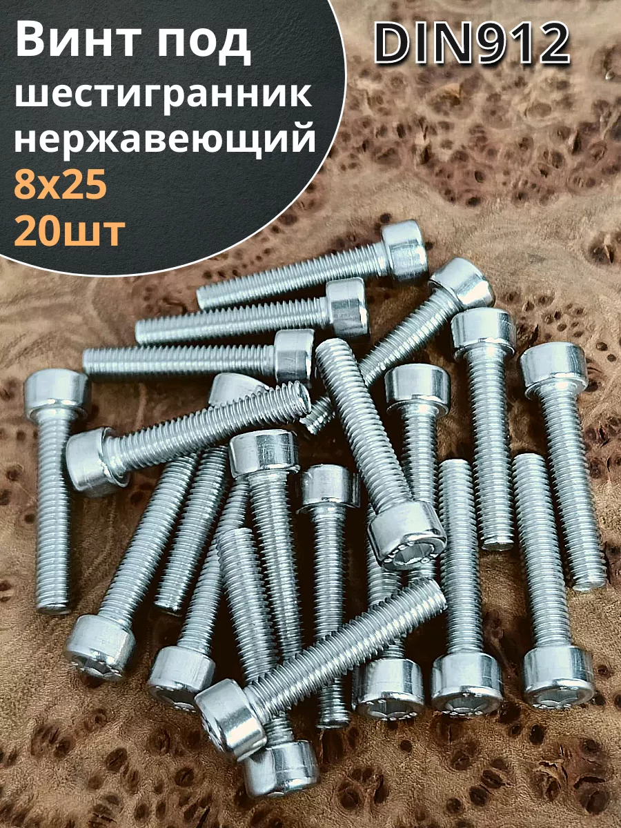 Винт нержавеющий шестигранник М8х25, DIN 912, 20 шт