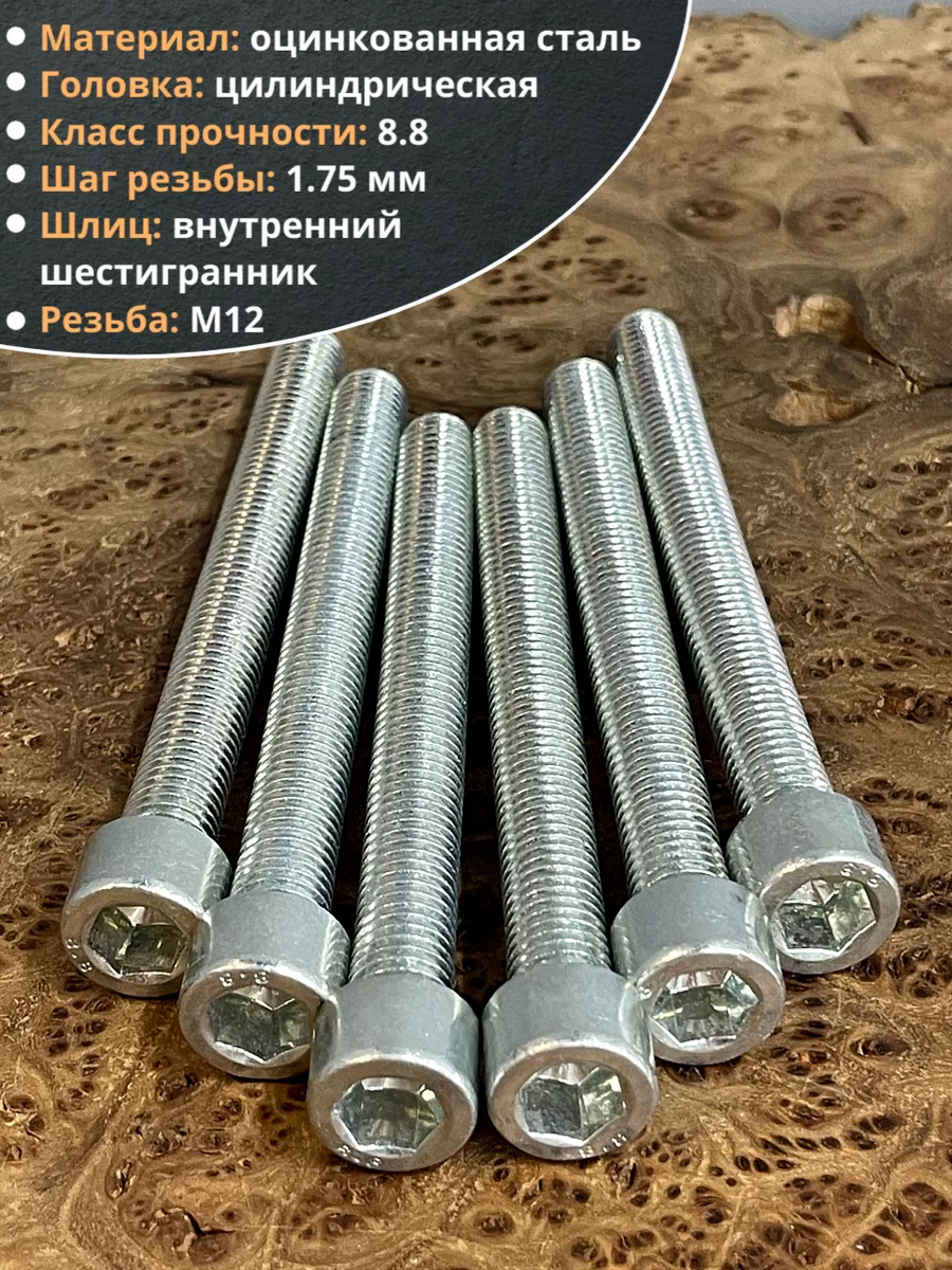 Винт под шестигранник ПР 12х70 мм ОЦ к.п.8.8 DIN912, 10 шт.
