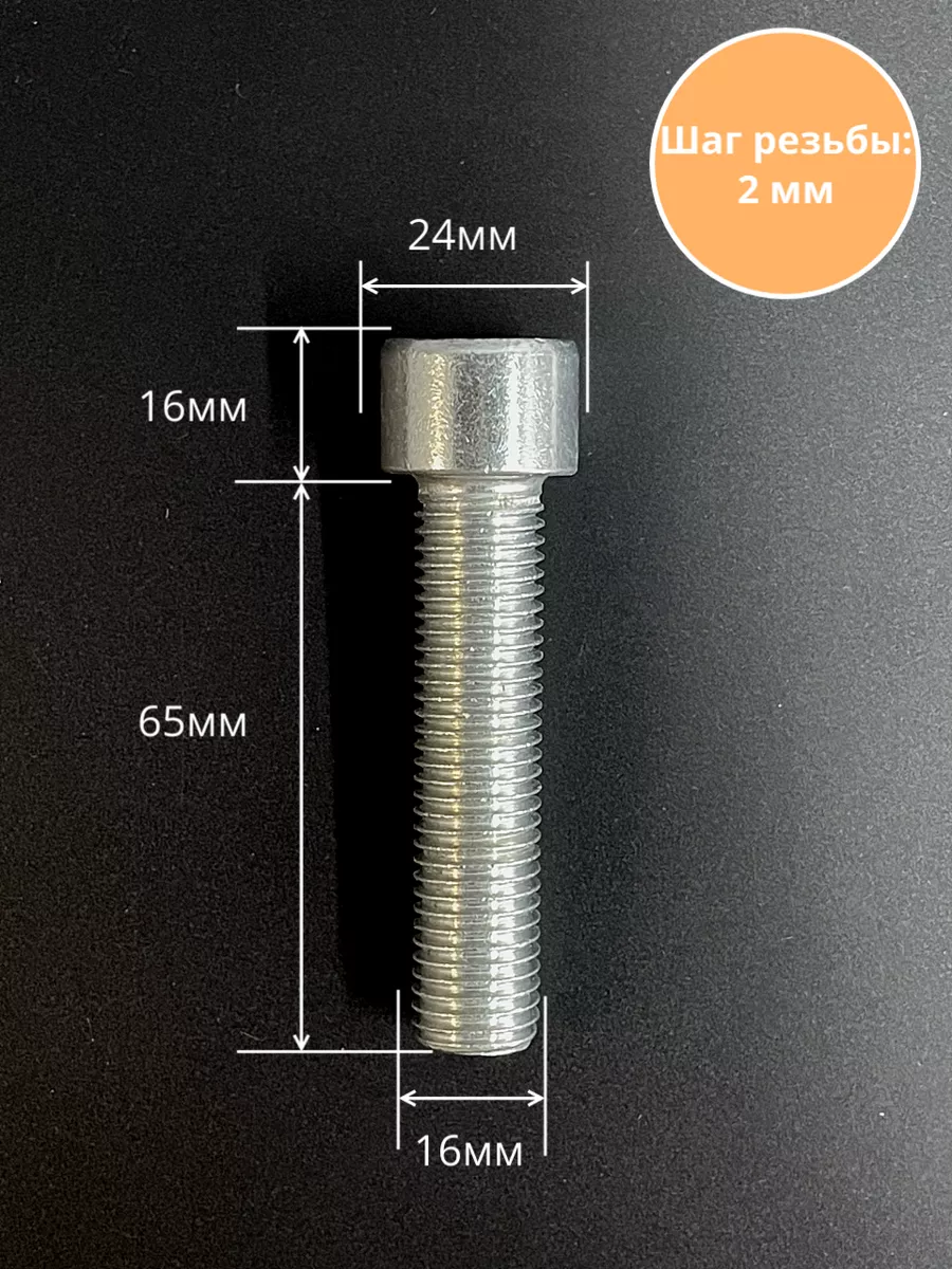 Винт под шестигранник ПР 16х65 мм ОЦ к.п.8.8 DIN912, 2 шт.