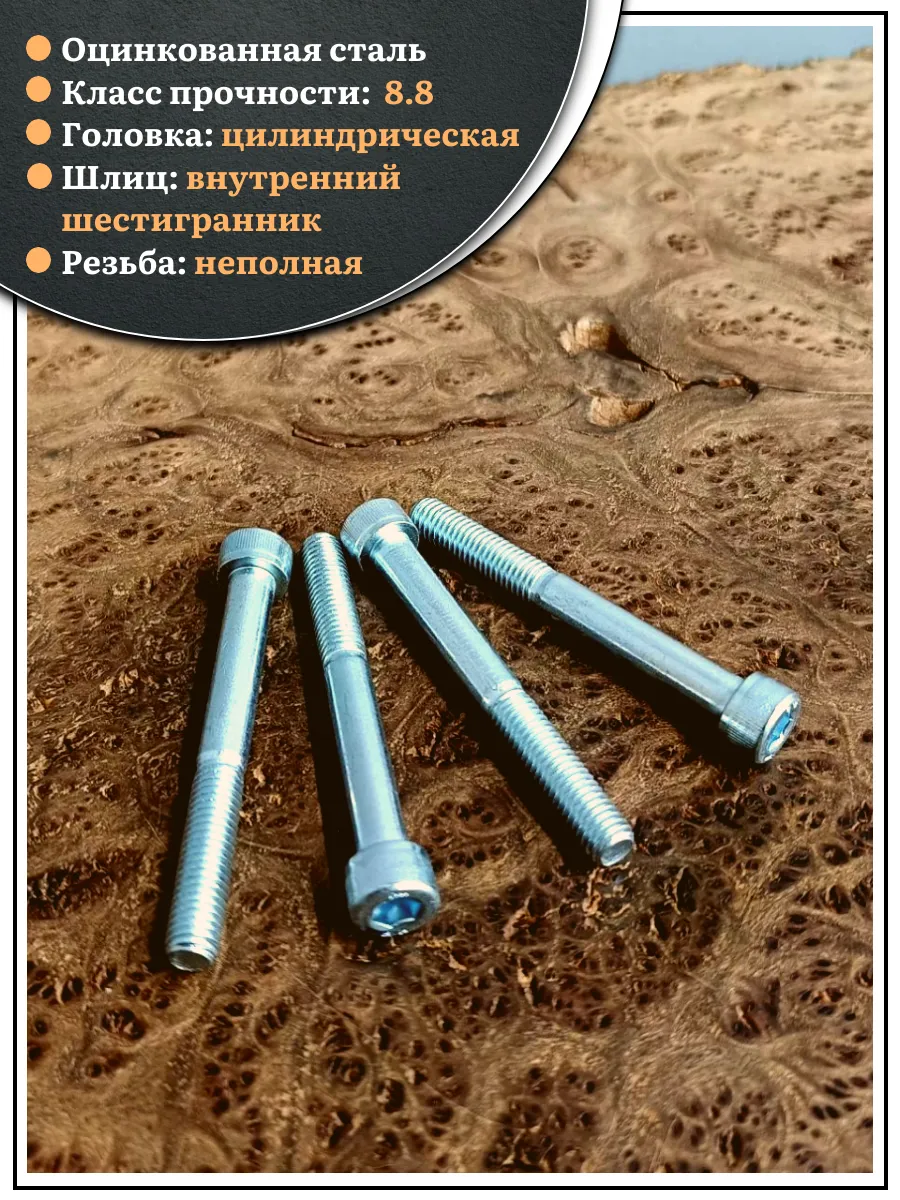 Винт под шестигранник НР 10х90 мм ОЦ к.п.8.8 DIN912, 10 шт.