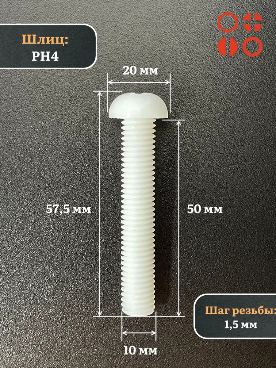 | Винт полиамидный 10х50 мм DIN7985 (пластик), 4 шт. | вп10507985ф4 | 1 шт. |